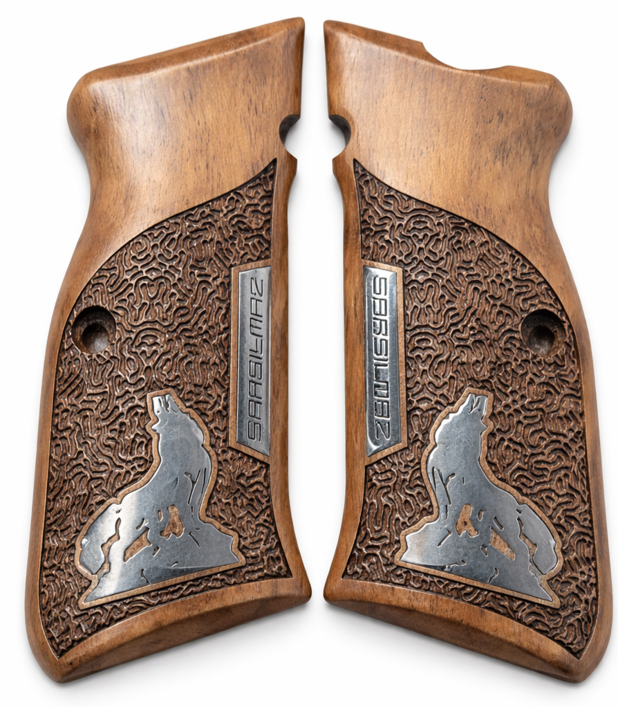 Kök ceviz ağacından yapılma sarsılmaz kılınç mega ve sarsılmaz K11 uyumlu tabanca kabzesi yücel av bayii